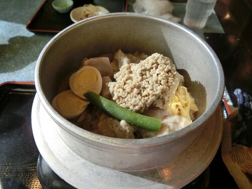『居酒屋新幹線2』では、燕三条にて釜飯が登場します♪ 今回は燕三条まで行く余裕は無かったですが、米どころの新潟県にせっかく来たので、長岡にて釜飯を賞味しました♪ というわけで、写真は「たわら家」というお店で食べた、とり釜めしです♪ 前記事の「道の…