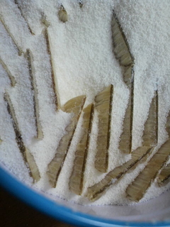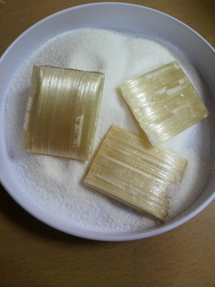 我が地元の通好みな銘菓で、毎年度後半の期間限定銘菓である「霜ばしら」という砂糖菓子(飴)があります♪ その名の通り、霜柱を模して作られた砂糖細工のようなお菓子でして、湿気の少ない年度後半にしか作れないという、期間限定の貴重な味わいなのです♪この「霜ばしら」の黒糖バージョンなるものが発売されたので、買ってみました♪ 1〜3枚目がその写真です♪ なお、セットでノーマルな白糖の「霜ばしら」も購入したので、比較のために、4〜5枚目の写真として載せました♪